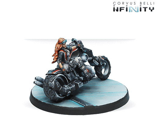 Once more Infinity is revving their motors! This new version of Penthesilea, ALEPH’s Steel Phalanx character, is wearing a leather jacket and riding a Kum chopper in the purest Easy Rider style! The Penthesilea Special Edition was pre-released during the Indy GenCon 2014, but now you can get it as a regular release.