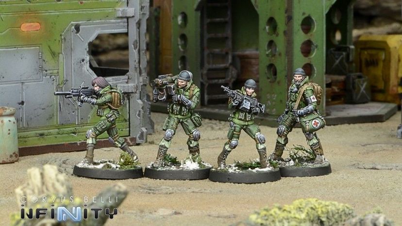 This box includes four miniatures: One Line Kazak with AP HMG, one Line Kazak with Sniper Rifle, one Line Kazak with Missile Launcher and one Line Kazak Paramedic. A vital addition to your Tartary Army Corps from the Operation Coldfront Battle Pack.
