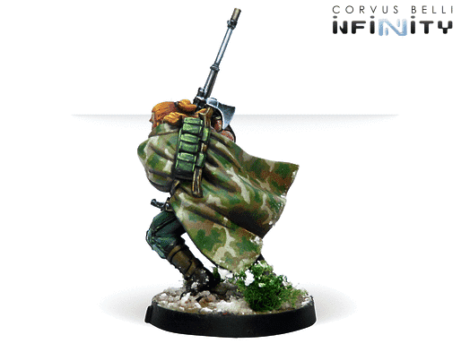 Complete your Ariadna army with a stealthy Specialist Operative who will take advantage of his Camouflage and his Forward Deployment to infiltrate between the enemy lines and generate as much damage as possible.
