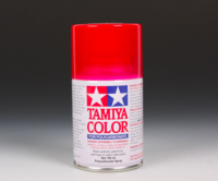 These spray paints were especially developed for decorating transparent polycarbonate bodies used in R/C car modeling. Each can contains 100ml of paint, which is the appropriate amount for finishing the model. Paint the body from the inside, keeping the can about 30cm from the surface. After curing, apply another coat. Small details should be brush painted beforehand, using Tamiya bottle paints for polycarbonate. These paints are impervious to oil and fuels, so they can be safely used on gas-powered R/C bodies.